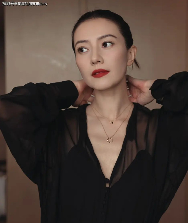 而 “紫红色口红” 则是整套妆容的 “点睛之笔”—— 紫红色自带成熟韵味,既不像正红色那般张扬,又比裸色更具气场,完美契合高圆圆的气质。它不仅能提亮肤色,让整个人看起来更显明艳,还能与连衣裙的浅色系形成对比,让妆容更具层次感,瞬间提升整体造型的精致度,展现出 “成熟又有韵味” 的女性魅力。