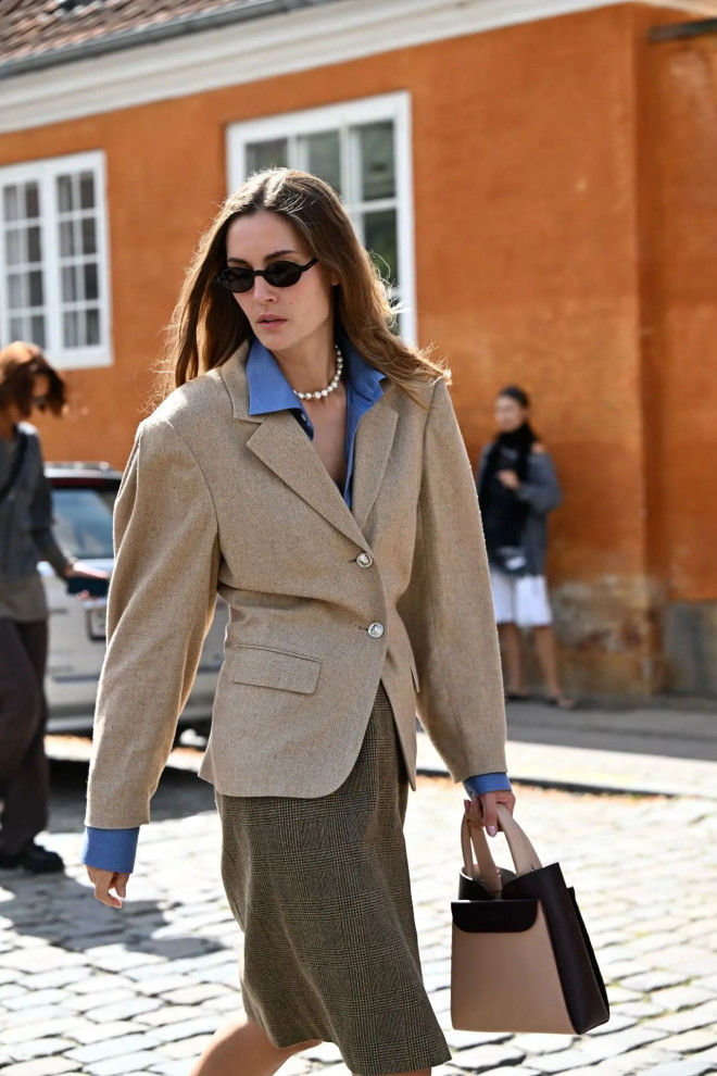 彰显贵气与质感的单品,老钱风西装首当其冲,无论是Ralph Lauren,还是Loro Piana,以及意大利经典品牌Brunello Cucinelli,都是老钱的代名词,近两年老钱风的流行,他们功不可没。从明星名流到大众的穿搭习惯上讲,时尚圈并非经济下行,而是低调、质感逐渐成为大众追求的风格。这个秋天,依旧是老钱当道,米、咖、棕色系的西装不仅彰显质感,也确实显贵气。在面料的选择上,棉麻材质更是拿捏老钱风的精髓。
