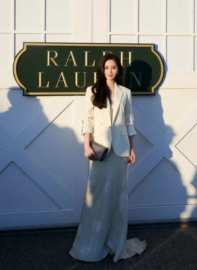 同样是Ralph Lauren的西装,刘诗诗内搭一条长裙,手拿包点缀,完全可以走上红毯,也不失光彩,演绎低调的华丽,日常穿搭也可以借鉴,换成短一点的连衣裙,也一个不错的搭配方案,简单又出彩。