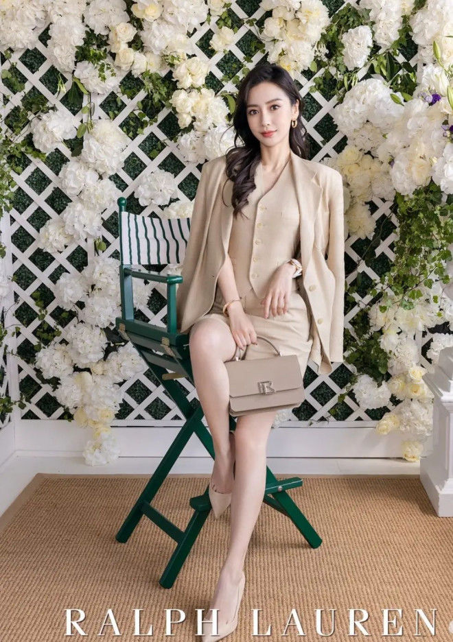 Baby出席温网也选了一套Ralph Lauren的套装,亚麻材质三件套,不过她选择了短裙和尖头高跟鞋,老钱中又有娇俏感,深谙“静奢”之道。