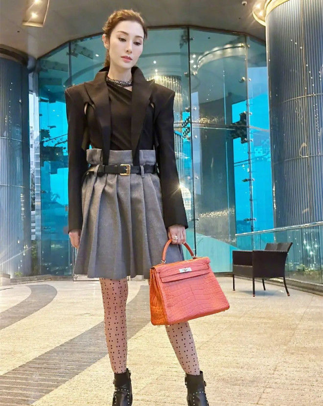 相较于日常的休闲风,李嘉欣在正式场合的穿搭,更偏爱 “花哨且个性” 的港式外套与裙装,将复古与时尚完美融合。