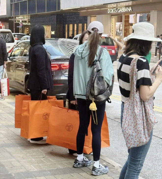 近日,香港尖沙咀街头的一组镜头,让这位昔日港姐冠军再次闯入公众视野:浅蓝色休闲外套松垮地搭在肩头,黑色瑜伽裤勾勒出笔直纤细的长腿,高马尾随着步履轻扬,若不是身边两位工作人员小心翼翼捧着的四大袋爱马仕,很难将这抹随性身影与 “顶级富太太” 的标签划上等号。