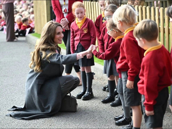 凯特王妃秋季造型绝美,灰色西服又飒又美,根本看不出已经43岁