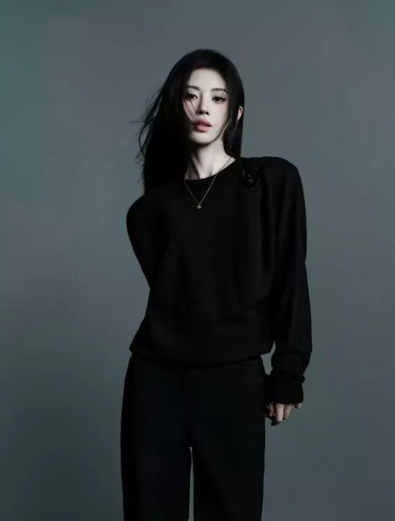 这次时装周的预热图中,她走得是冷艳高级路线,黑长直发型+All black的穿搭,一种高知感美人的气质扑面而来。