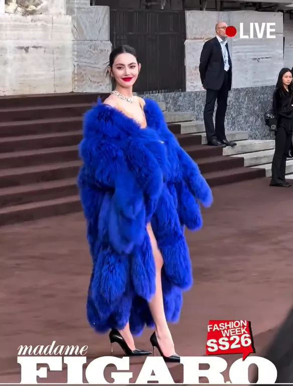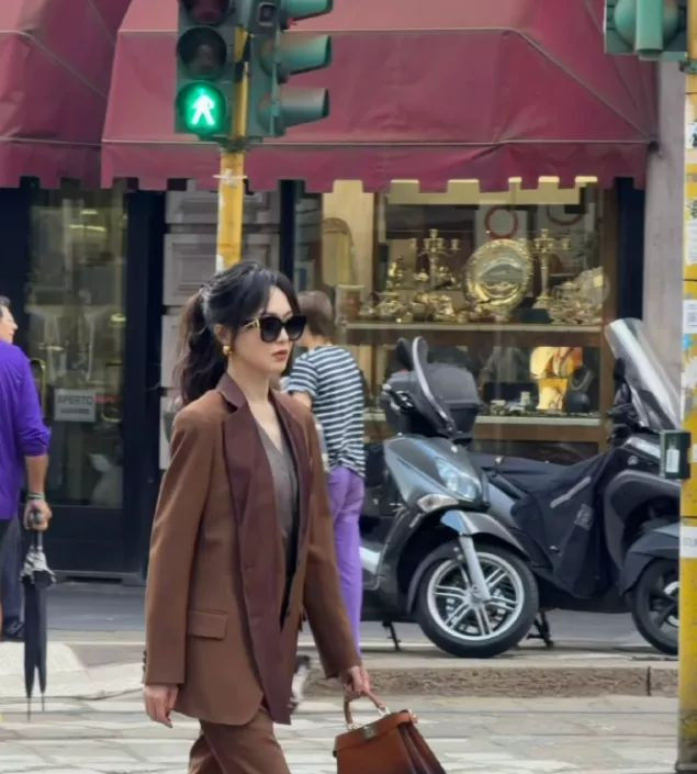尽管还没正式出席活动,但唐嫣在米兰时装周的路透图已经出现了。
