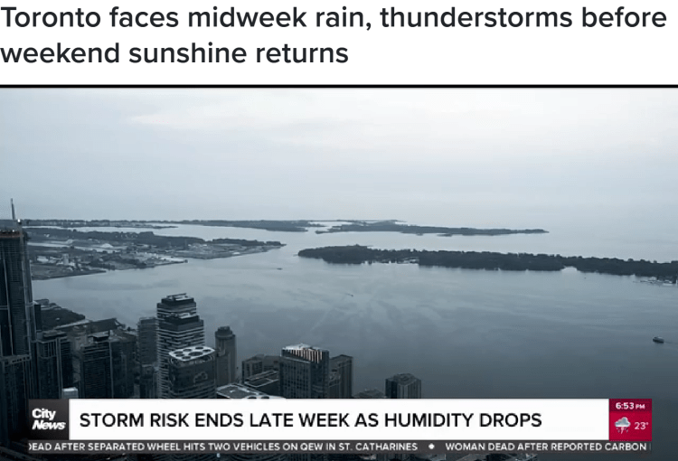 多伦多本周再度陷入恶劣天气系统的“拉锯战”之中。随着周三傍晚起一轮新雷暴的逼近,加拿大环境部警告称,强降雨可能在短时内引发城市低洼地区的洪涝风险。