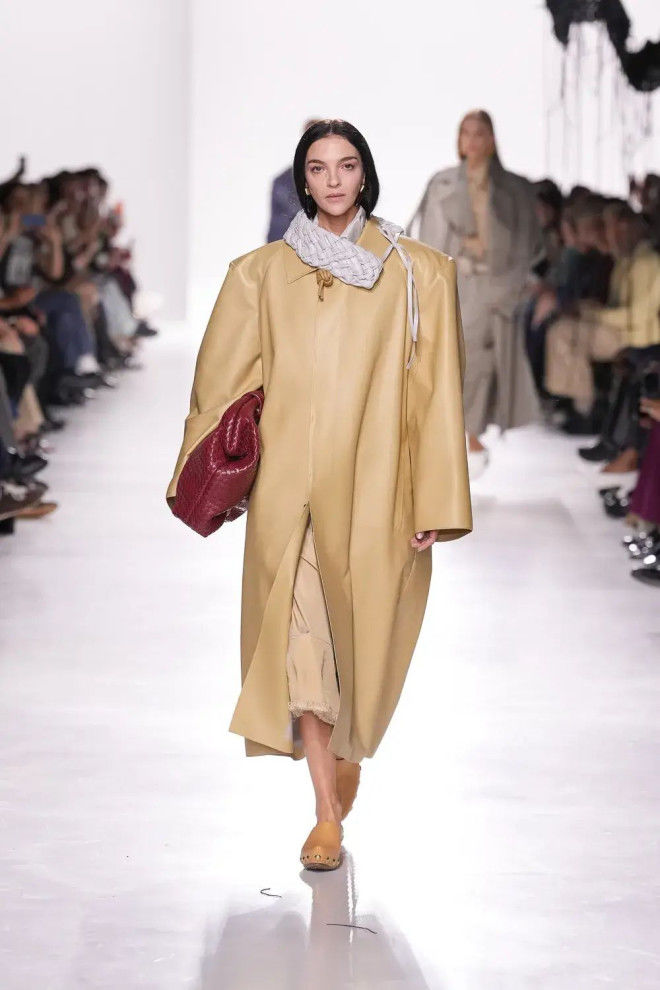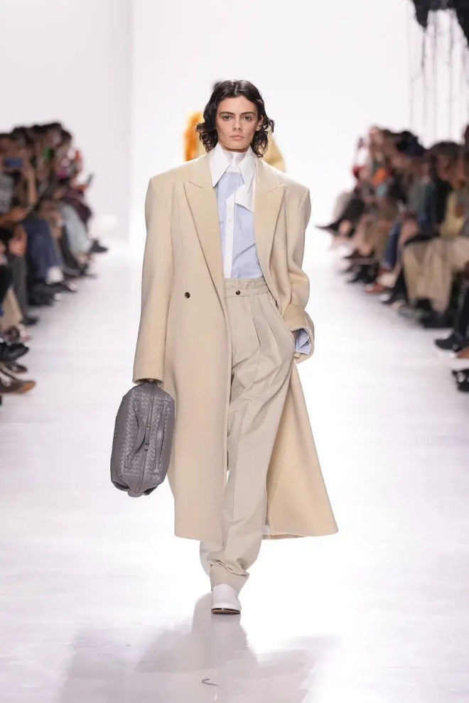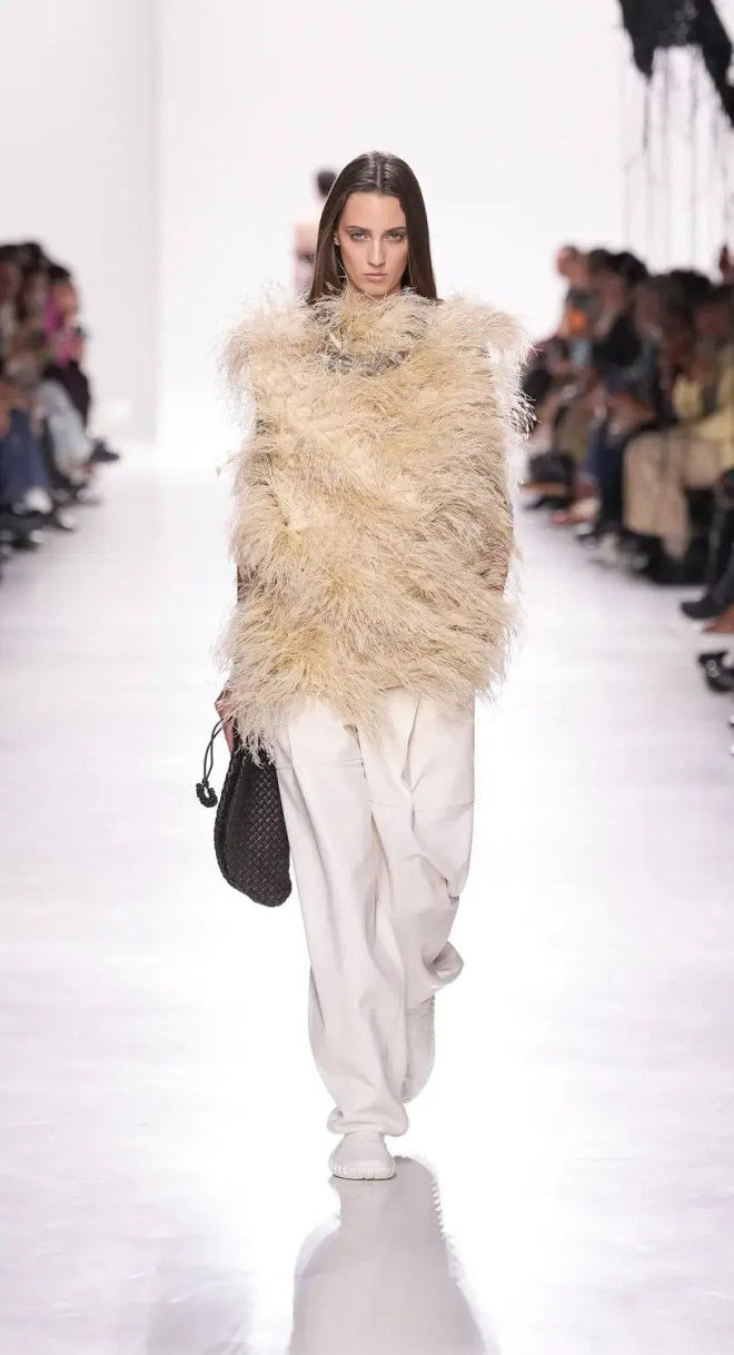 秀场以简约空间为背景,摒弃繁杂装饰,让观众的注意力聚焦于服装本身,Trotter延续了BV
