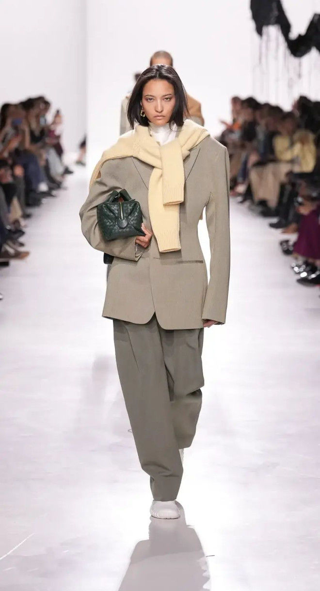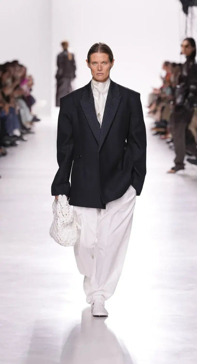 又例如BV标志性的编织元素,运用于外套或裤子上,呈现无与伦比的质感,即使再简单的配色,也能在细节中品味一二。