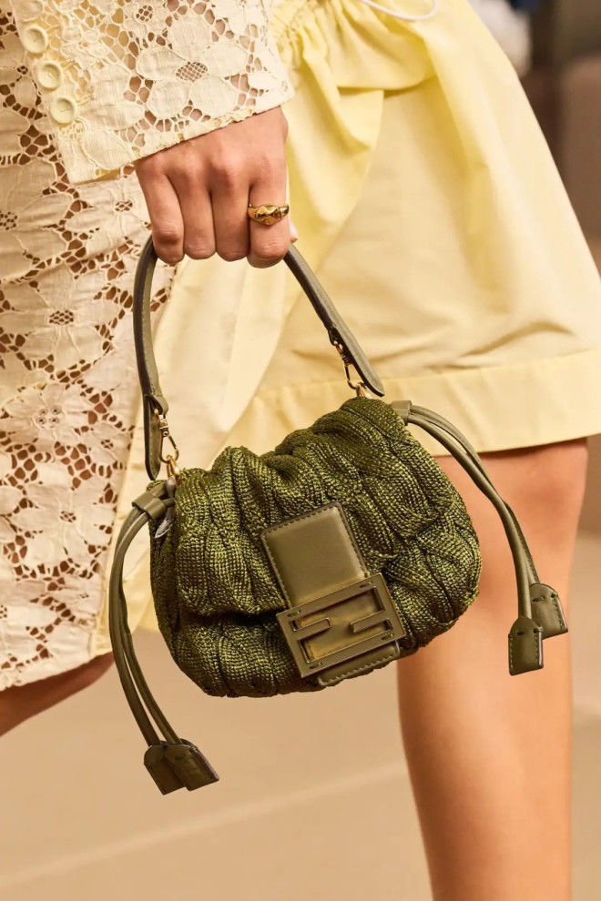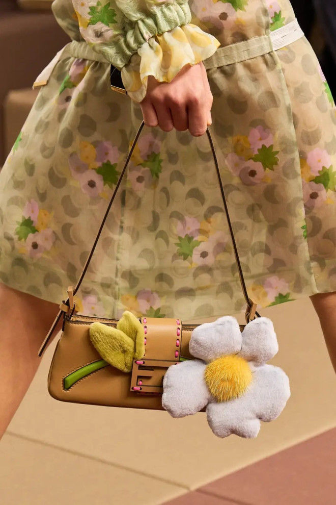 值得一提的是,本季Fendi的手袋,设计感拉满,从透明网纱的Peekaboo,中间隔层是用串珠做成的小雏菊点缀,到大小串珠制作而成的饺子包手柄……有被心动到!