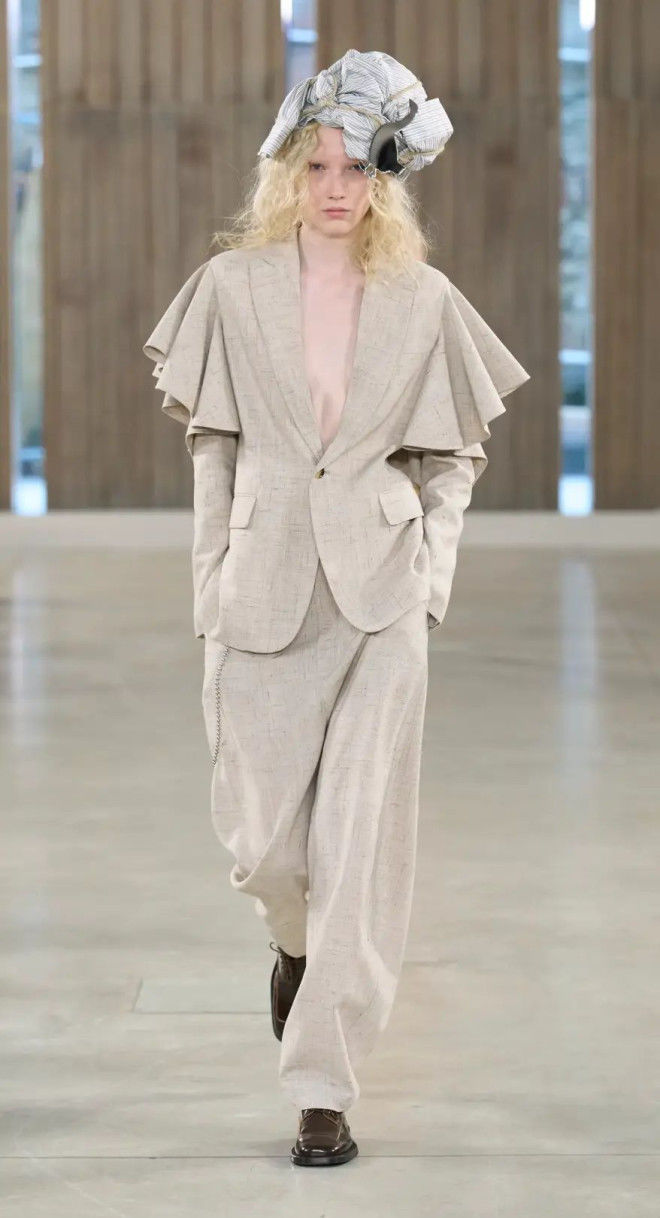 所以在本季服装上,男女装元素互相借鉴,大胆的