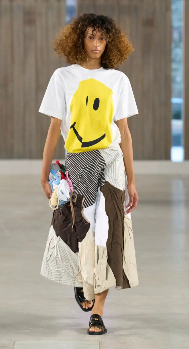 ,也出现于T恤、针织上,Moschino 用它来缩小高端时装与大众文化之间的距离。