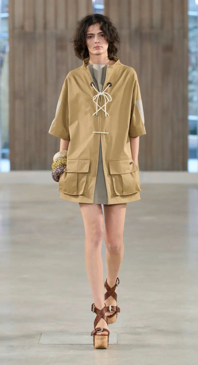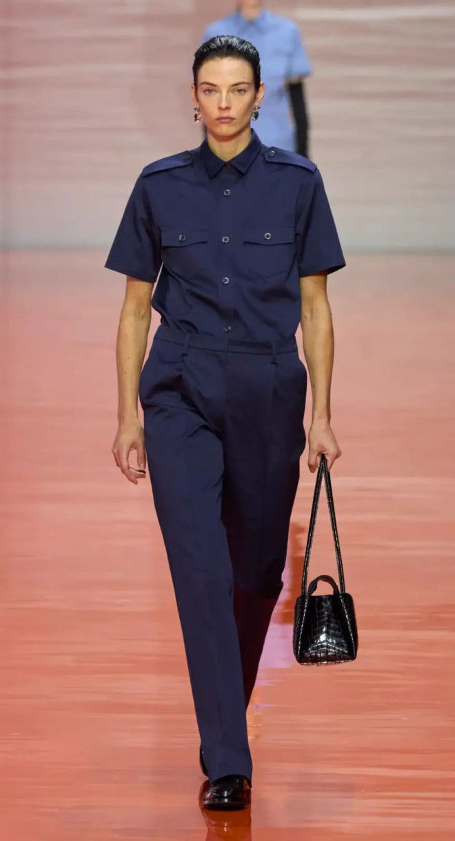 从男女通穿的工装套装,到有工装口袋标志元素的大A摆连衣裙,以及酷飒中性的工装外套,都让每组look更有力量感。