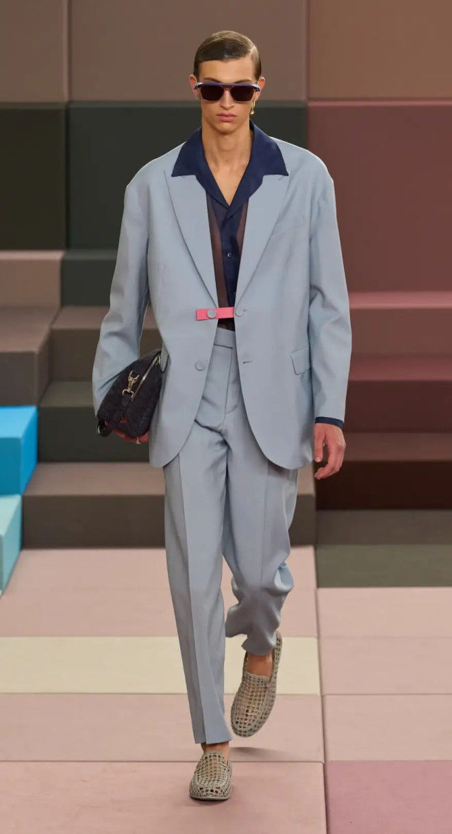 ,形成特别的视觉冲击,既增加了亮点趣味,也让西装打破刻板严肃的印象。
