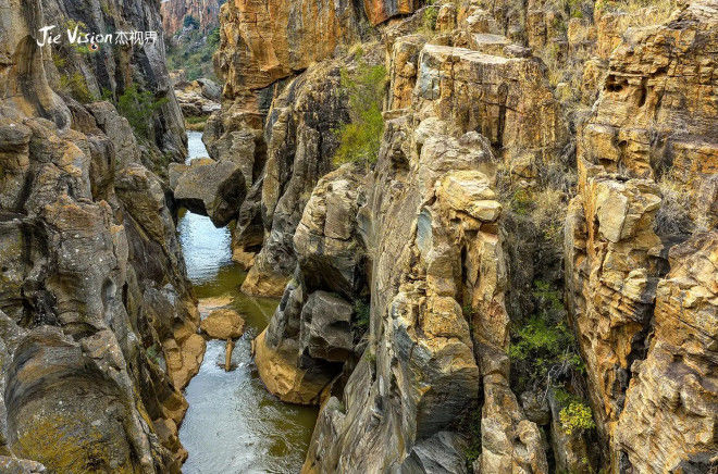 如果你热爱旅行,又恰巧去过南非,一定不会对布莱德河峡谷自然保护区感到陌生。它位于南非东北部的普马兰加省,像一条翠绿的巨龙,蜿蜒盘踞在非洲大陆的腹地。这片自然保护区占地超过300平方公里,拥有垂直落差达750米的壮丽峡谷、郁郁葱葱的亚热带植被和散布各处的自然奇观,堪称非洲最值得一游的目的地之一,而在保护区内,最具神秘色彩的,非博克好运穴(Bourke’s Luck Potholes)莫属。