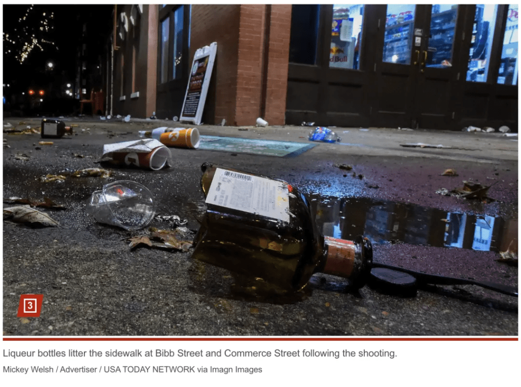 事发地靠近比布斯街和商业街,是游客密集区,当晚城中举行多项节庆活动,年轻人云集,警方的部署远远无法应对突发的多点枪战。事发时不少路人慌忙逃命,社交媒体上流出的视频中,可听见长达近30秒的密集枪声。