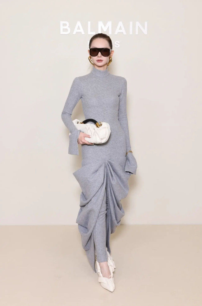 看秀造型还得是戚薇,一身灰色连体裙搭配金色首饰点缀,展现身材曲线的同时高级感满满。手包与鞋履颜色和设计上均有呼应,褶皱细节营造出云朵般的层次。