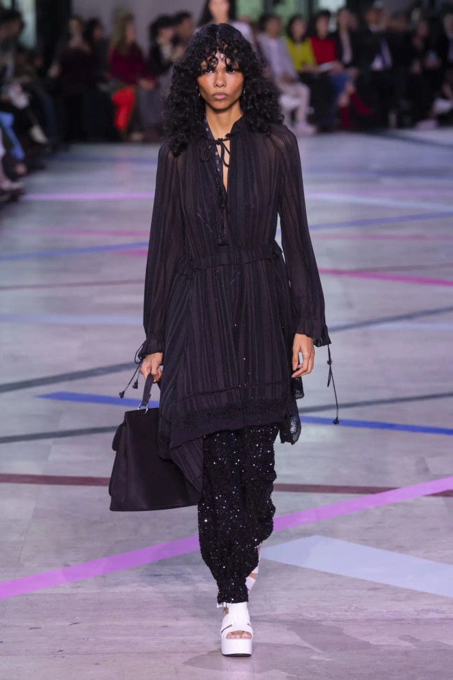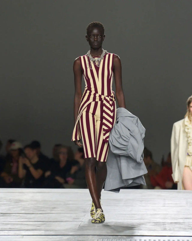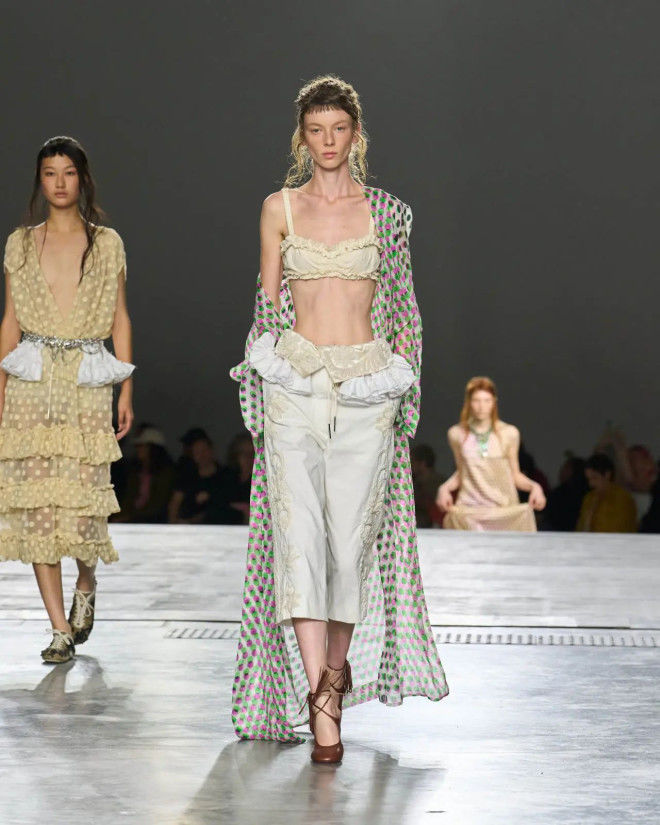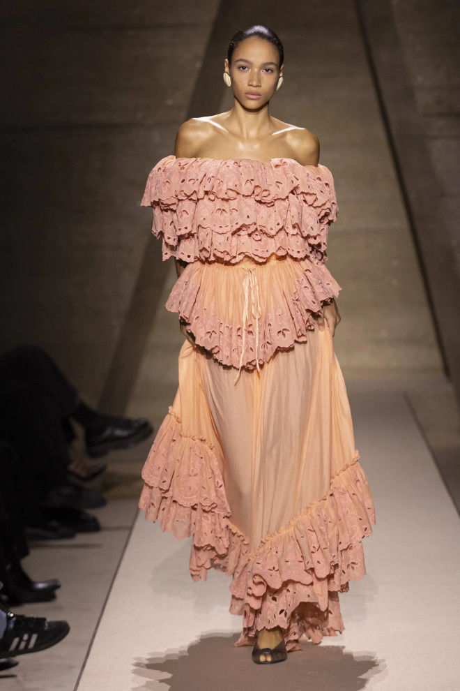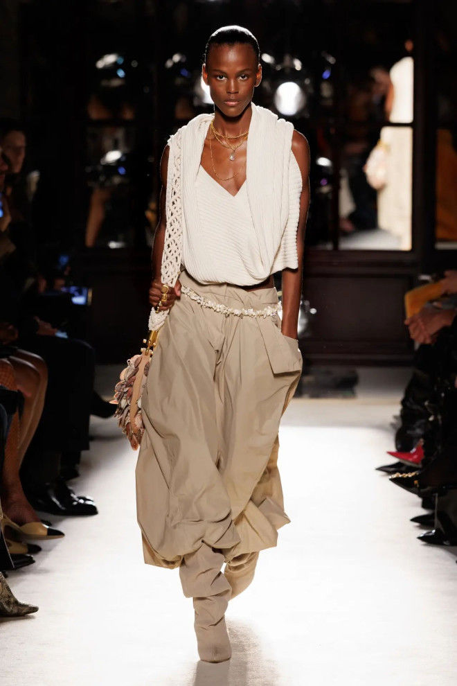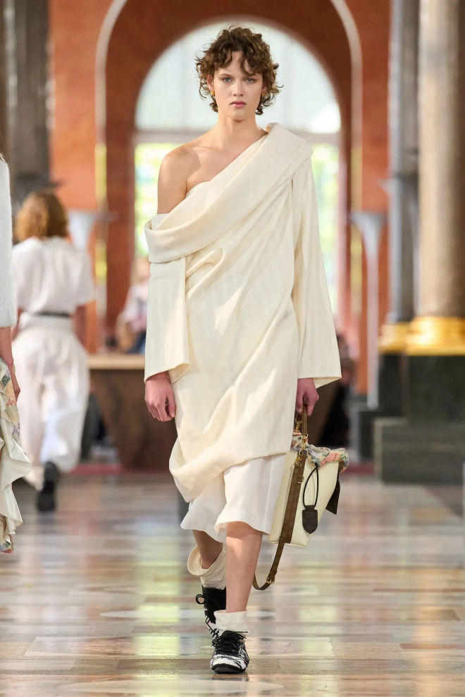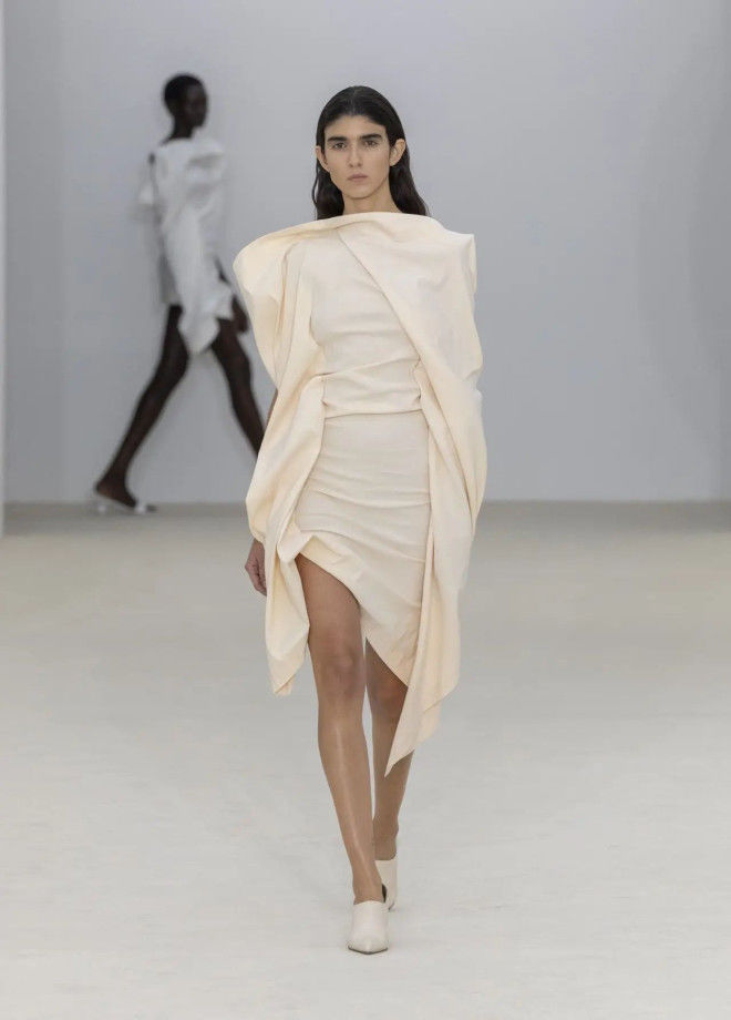 于是本季,品牌创意总监 Chemena Kamali 将创作重心拉回到了极具个人意义的领域 —— 凭借直觉塑造廓形、体积与动态。通过褶皱、打结和缠绕技艺,赋予服装通透轻盈的质感。看似随性自然,实则精心考究。