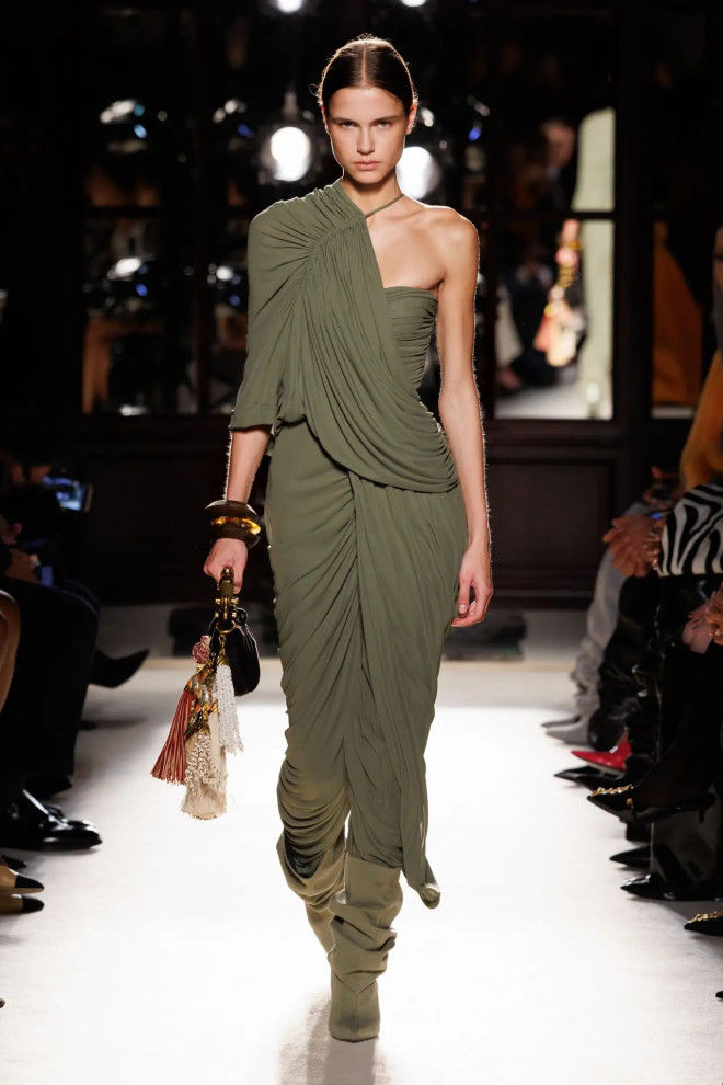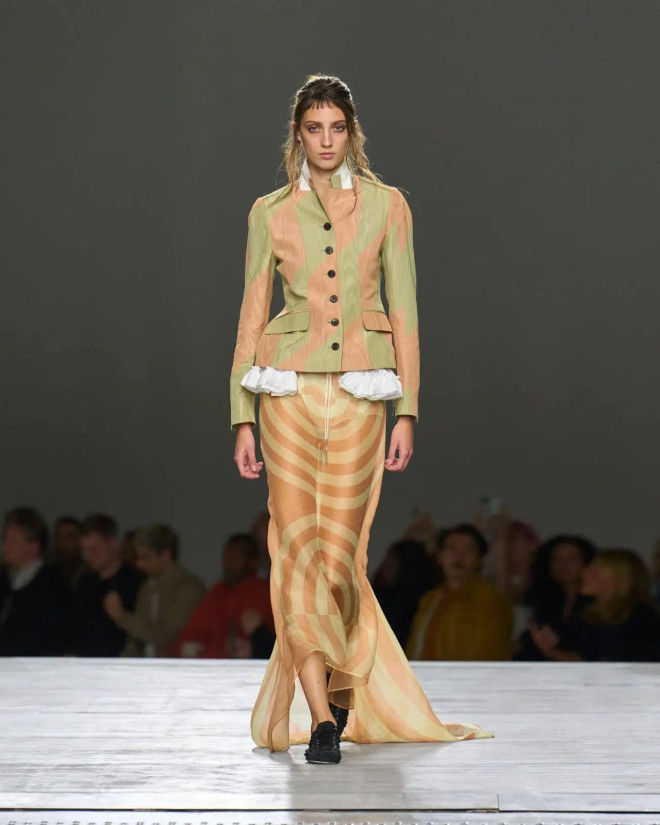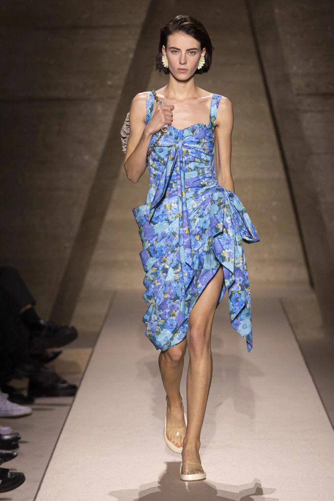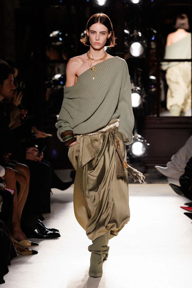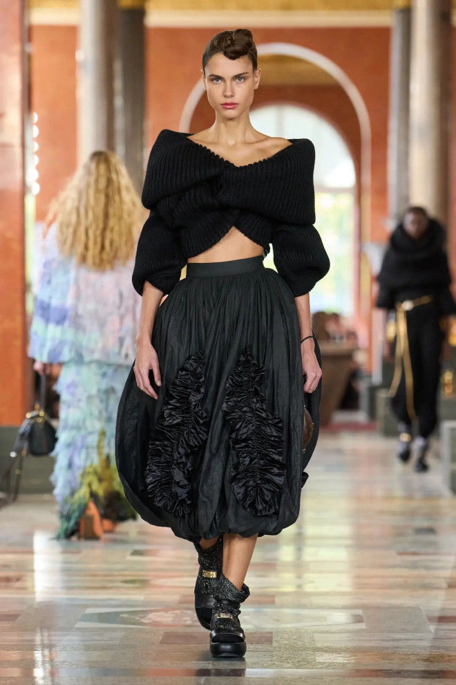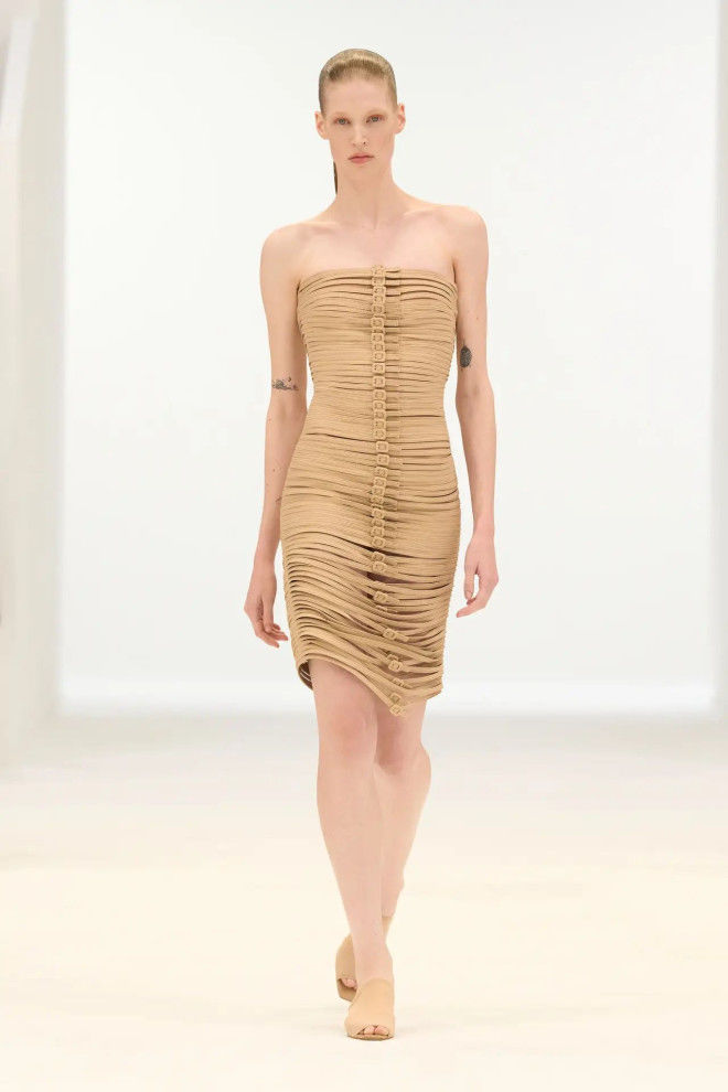于是本季,品牌创意总监 Chemena Kamali 将创作重心拉回到了极具个人意义的领域 —— 凭借直觉塑造廓形、体积与动态。通过褶皱、打结和缠绕技艺,赋予服装通透轻盈的质感。看似随性自然,实则精心考究。