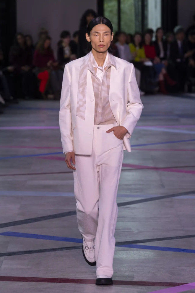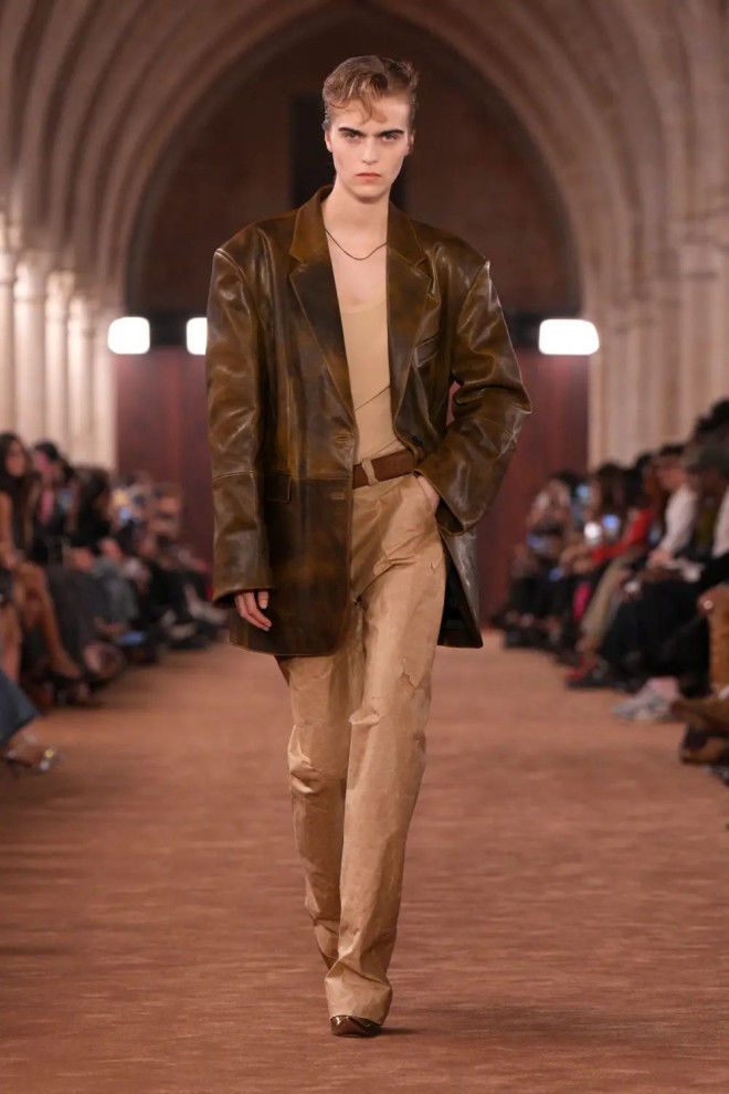 本季以解构男装与女装原型的方式,探讨两者之间相互的影响。系列中极致与日常交替切换,呈现出女性主角的另一种构想——不依循既定目光,而启用她多面的自我感知。于巴黎历史悠久的 Collège des Bernardins 拱顶大厅内,品牌营造出一间氛围感浓郁的雪茄沙龙,在这一场景中,她们如鱼得水:既叛逆前卫,又精致隽永。