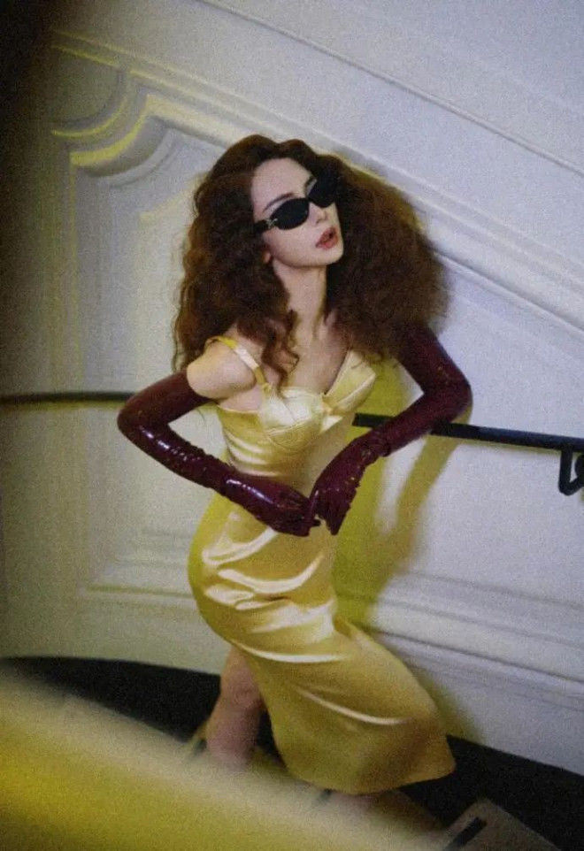 值得一提的是,她在出席 Mugler 秀场的造型那更是吸睛,身着 Mugler 定制款裸色紧身胸衣式金色吊带裙,复古与前卫的精妙融合,搭配蓬松的法式卷发,前卫又大胆。