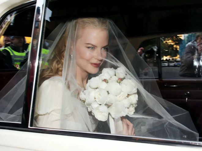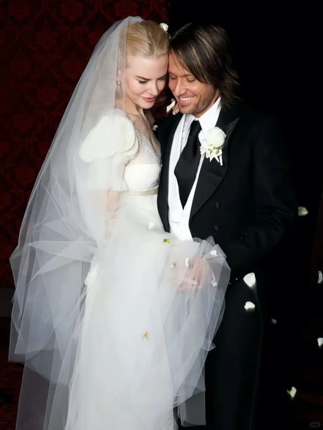 一年后,他们在悉尼举办婚礼,画面温馨浪漫。妮可身穿巴黎世家定制的蕾丝婚纱,笑容灿烂,仿佛重生。▼