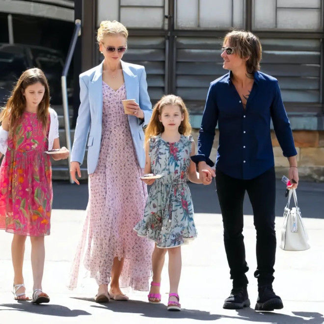 她携俩女儿桑迪-罗斯和费思-玛格丽特一起看秀,三人看着像姐妹。妮可一身简单的白衬衫配牛仔裤,极简调调拉满。▼