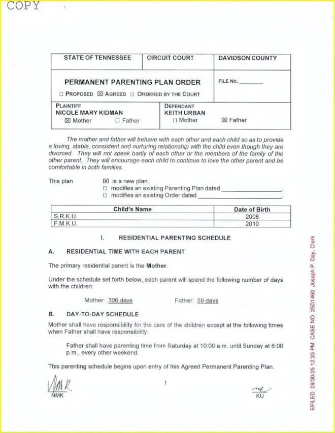 妮可希望成为未成年子女的主要监护人,孩子们一年中会有 306 天和母亲一起过,剩余时间由父亲陪伴。▼