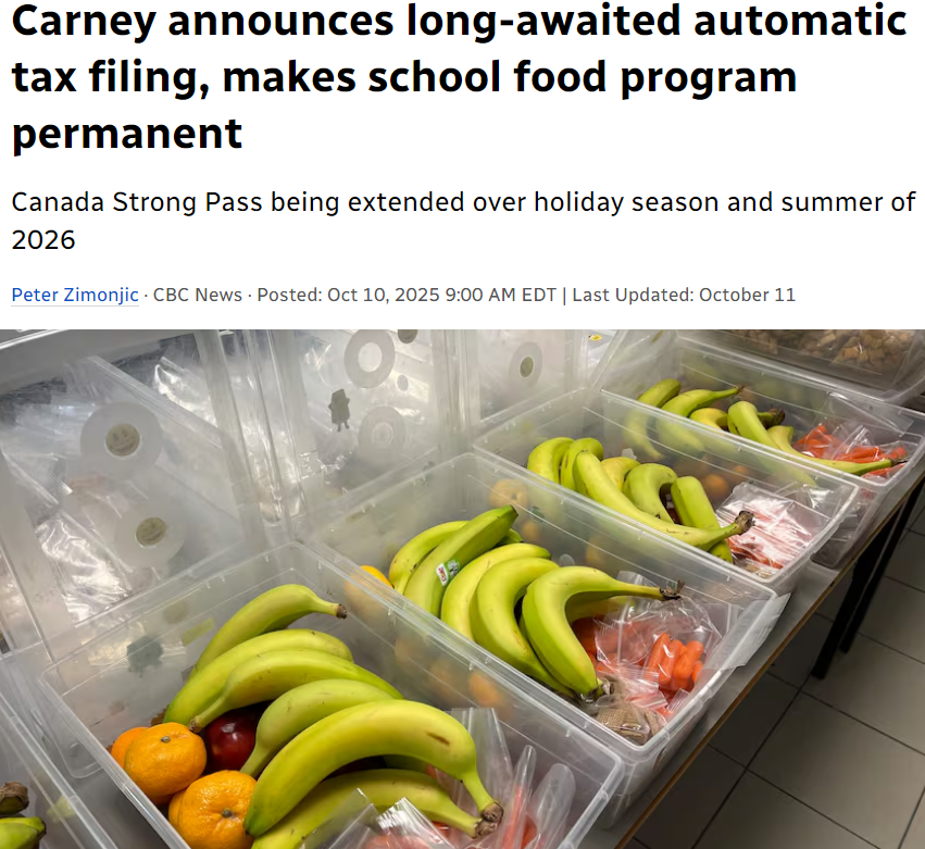 就在国内通胀持续、住房危机加剧、移民政策饱受争议之时,加拿大总理马克·卡尼(Marc Carney)宣布三项被称为“民生炸弹”的政策改革:自动报税系统、全国校餐计划永久化、以及“强力通行证”的延长。这些举措在舆论场中被迅速冠以“撒钱”之名,但更值得深究的是,这背后究竟是制度补漏,还是政治自救?