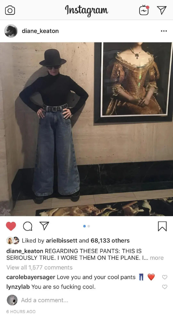 除了电影,黛安·基顿还是时尚领域最重要的ICON之一。上世纪70年代那部《安妮·霍尔》不仅改变了美式爱情电影的格局、为她赢得了一座奥斯卡小金人,还让她饰演的“安妮·霍尔”成为了改变街头潮流风格的时尚文化现象。