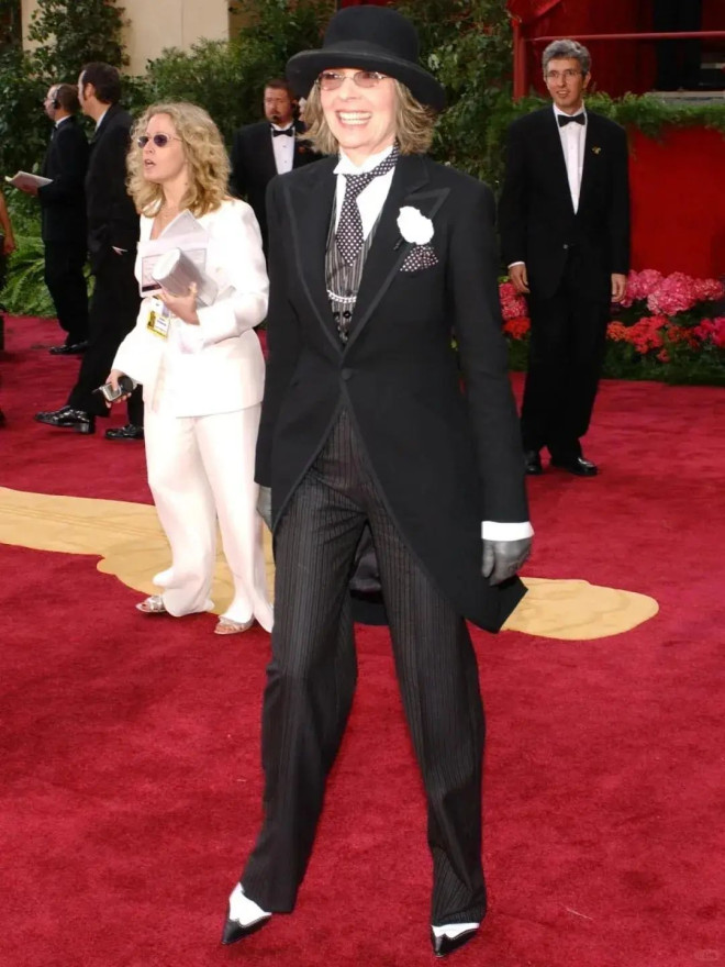除了电影造型,黛安的很多红毯造型也都是中性路线。