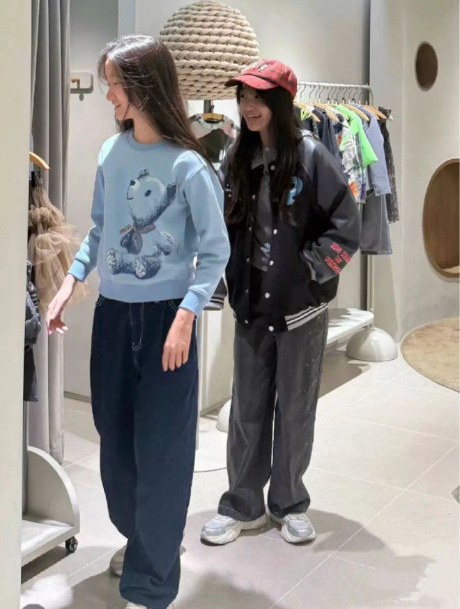 赵子琪分享了带着俩女儿逛街的画面,两个女儿已经快要和妈妈一样高了,都是瓜子脸、细高个,好养眼。