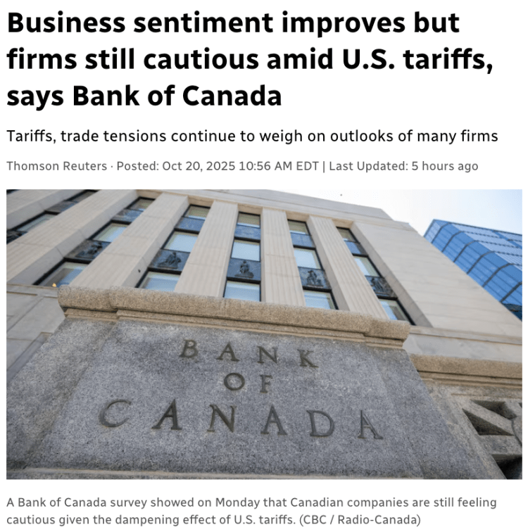 10月20日,加拿大央行发布最新季度商业和消费者调查报告,再次为市场释放出强烈的“降息信号”。受此影响,加元兑美元汇率跌至六个月低点附近,兑人民币更是逼近心理关口5.00,引发市场高度关注。