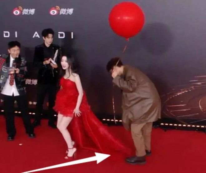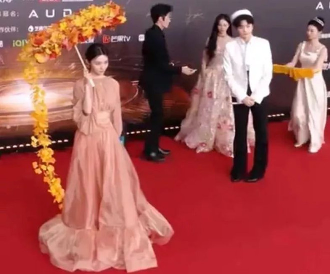 红毯人多本就拥挤,视界大会还安排明星带道具,有人拿了一个大花伞上场,全程不管不顾,其他人左躲右闪,尬在现场,看得人哭笑不得。