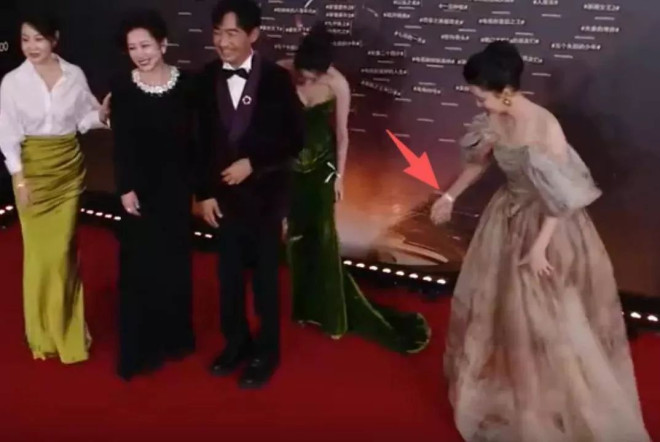 不难发现,红毯上但凡多一个人,就会显得拥挤,有时候裙摆甚至成为了抢位置的工具。
