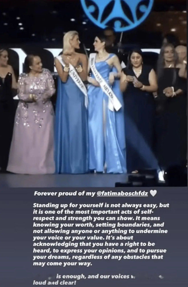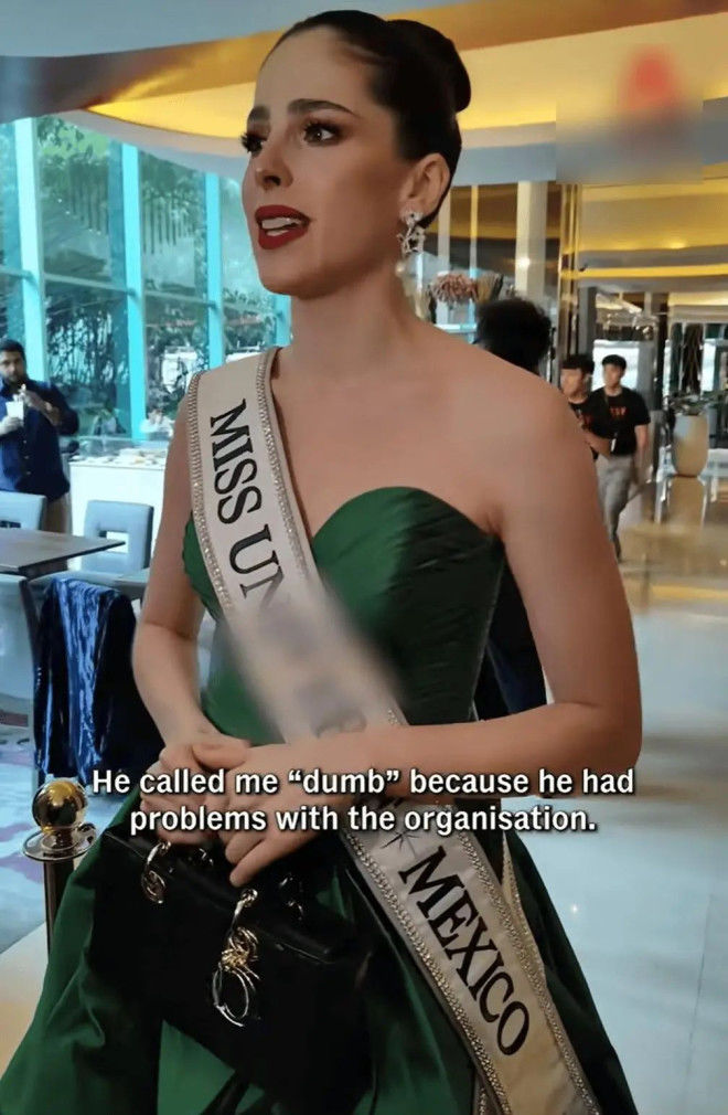 他特别不留情面地公开点名批评了墨西哥小姐博世(Fátima Bosch),声称博世拒绝按照墨西哥选美总监的指示,参加社交媒体照片拍摄。