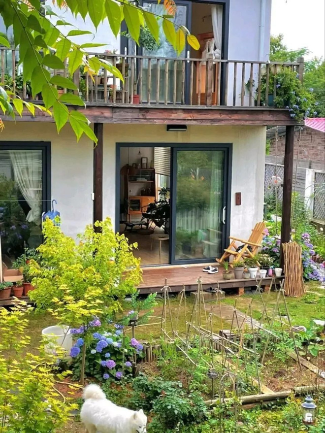 院子里有花草、果树、小池塘,还有手工灶台和竹编凉亭,一年四季都有不同的风景,既实用又治愈。