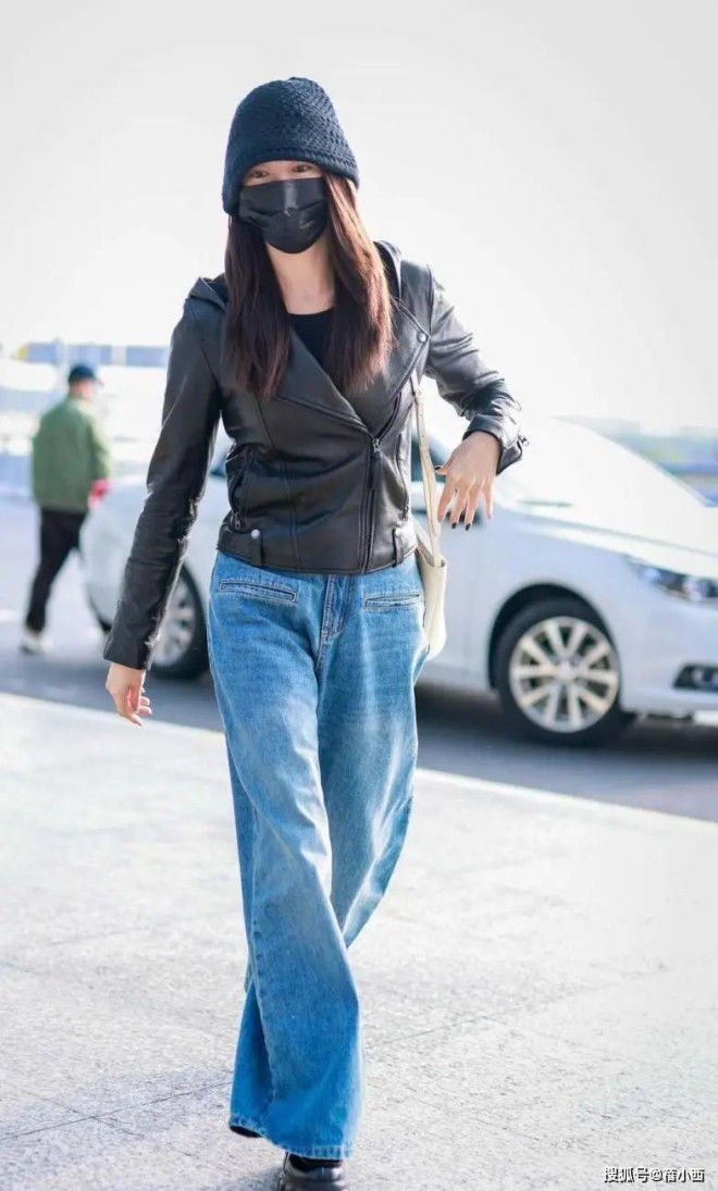 穿皮衣时,里边搭什么取决于是哪个季节。如果是秋季,时髦精们不假思索会尝试打底衫,其不仅具有高级感,还能确保人不受冻。皮衣两侧是有口袋的,张雨绮把一只手放进口袋,一只手在外边自由摆动。这样的话,走起路来气场十足。