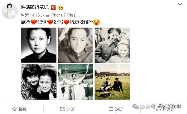 许晴爆表的颜值源自于家族的好基因。她曾在微博上晒出姥姥、爸爸、妈妈年轻时的照片,网友称赞声一片。