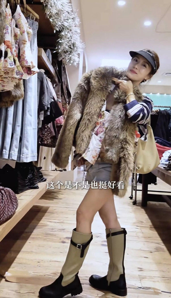 当然这件皮草外套应该不是很贵,因为是环保皮草的,但是理念说特别暖和,也很有设计感她非常喜欢。