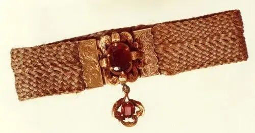 Margot Robbie 的手腕上也佩戴了由勃朗特故居所在地——霍沃斯家族工坊 Wyedean Weaving制作的复刻版手镯,以致敬原著作者。