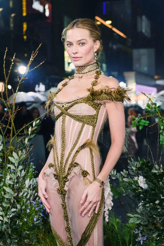 除了影片中的高频换装,在电影全球宣传营业中,Margot Robbie 继续上演“好莱坞卷王”模式,几乎每站的宣传造型都堪比出席时装周,穿搭紧紧围绕古典、哥特、暗黑的电影气质,每次亮相都引发高频讨论。