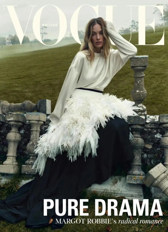 身穿香奈儿2026春夏系列登上VOGUE英国版2026开年刊封面,雾灰背景加上极致冷感,每张大片都像是从电影里截出来的片段。