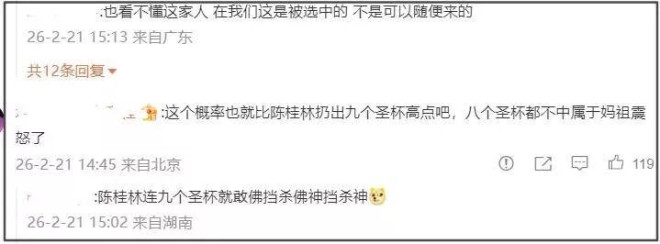 有网友用数学计算的方式算了8次不中的概率,发现几率是百万分之一,显得一切都更加荒唐了。对于这个局面,有网友表示妈祖形象相关的人物都必须是选中的,不可以随便来。
