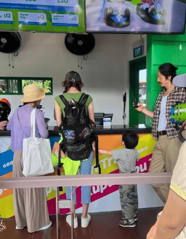 坐在一旁的黑泽良平,穿着一件灰色的短袖T恤和卡其色短裤,头发随意地扎成一个丸子头,整个人也十分放松。正在用餐的他偶尔也会看向林志玲和孩子,画面里没有刻意的互动,却透着一股平淡又安稳的氛围。一家三口就像普通家庭一样,在餐厅里享受着难得的休闲时光,简单的画面却格外治愈。
