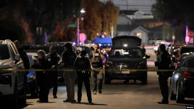 白宫记者协会年度晚宴枪击事件发生后,联调局和警察在加利福尼亚州托伦斯与嫌疑人科尔·托马斯·艾伦有关联的住宅外执行任务。(2026年4月25日)