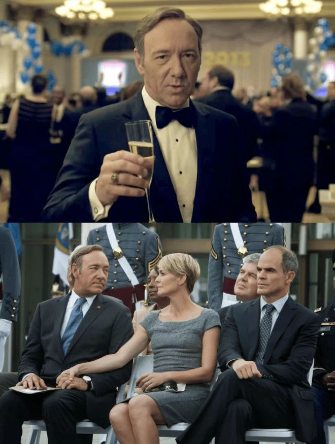 《纸牌屋》中,史派西饰演的政客,逐步升级到总统。他虚伪狡诈,乱搞男女关系,杀政敌与情妇,还嚷嚷着“我这种爬上食物链顶端的人必须心狠手辣”,还跟各国有复杂的政治外交,折射出政坛的黑暗人性!