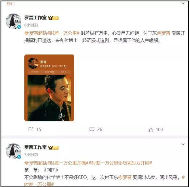 与此同时,罗晋工作室更换宣传版图,连发两条动态,都是为了宣传罗晋新剧。