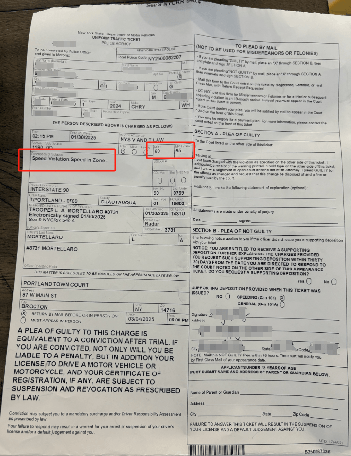 几周后,他收到惊喜答复:法院将他的“超速告票”改判为“停车违规”,仅需缴纳150美元罚款,且无扣分与保险涨价风险。