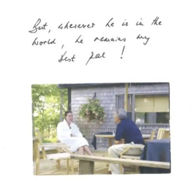比如现任英国驻美国大使彼得·曼德尔森,他在生日祝福中称爱泼斯坦为“我最好的朋友”,还贴心附上了几张照片。