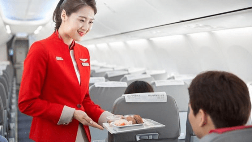 空乘人员向乘客讲解航空公司的安全规定,